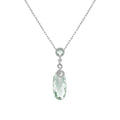 This pendant features a striking 17.89 carat briolette-cut green amethyst, elegantly suspended from a diamond-accented bail with approximately 0.33 carats of diamonds. Crafted in 14k white gold, the pendant highlights the vibrant beauty of the amethyst, complemented by the subtle sparkle of the diamonds for a refined and sophisticated look.