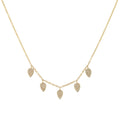 Enhance your elegance with our enchanting Pave' Leaf Necklace, meticulously crafted in radiant 14k yellow gold. This exquisite piece features 5 beautifully detailed "leaves" encrusted with dazzling pave-set diamonds that capture and reflect light with every movement.