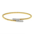 This sophisticated open bangle features a ball design with 12 round brilliant diamonds, totaling approximately 0.65ctw (G VS2). Crafted in a refined two-tone combination of 18K yellow and white gold, the design exudes timeless elegance and luxury.