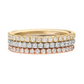 This is one of our most popular sizes for the Oui wedding band. The outside width of the band is approximately 1.5-1.6mm with hand set with diamonds all the way around. Each ring has approximately 0.25ctw-0.30ctw in diamonds.