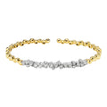 This elegant two-tone bangle, crafted in 18K yellow and white gold, features a striking zigzag ball design adorned with approximately 1.08ctw of round brilliant diamonds (G VS2). The dynamic contrast between the metals and the sparkling diamonds creates a sophisticated and modern statement piece.