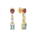 These stunning dangling earrings feature a marquise diamond, complemented by emerald-cut aquamarine and round pink sapphires, all set in 14K yellow gold. The earrings are adorned with approximately 0.97ctw of diamonds, graded H in color and VS2 in clarity, alongside 3.05ctw of aquamarine and pink sapphires. The vibrant gemstones, combined with the elegance of the diamonds, create a sophisticated and colorful statement piece, blending refinement with charm.