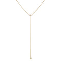 Simple, sophisticated and sexy. Diamond drop lariat style necklace available in 14kt yellow, white or rose gold with 16 inch neckline and 3 - 4 inch drop down the middle.